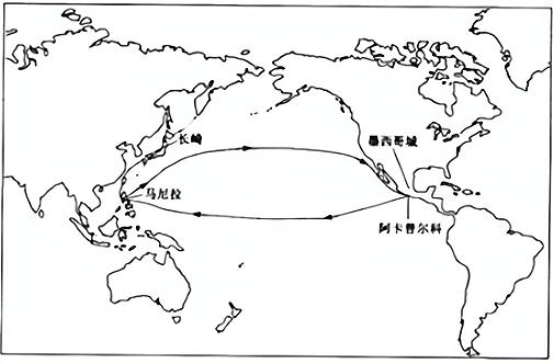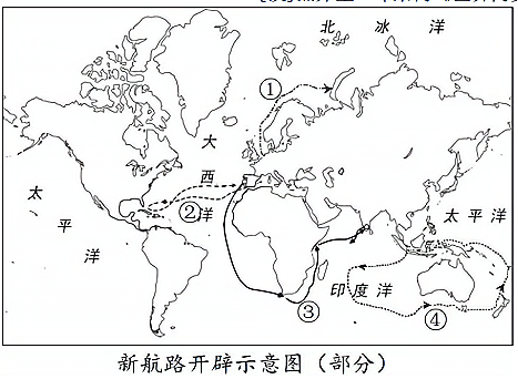 ”路线所对应的图中序号。分析葡萄牙和西班牙的航行给世界和欧洲带来的影响。(6分)