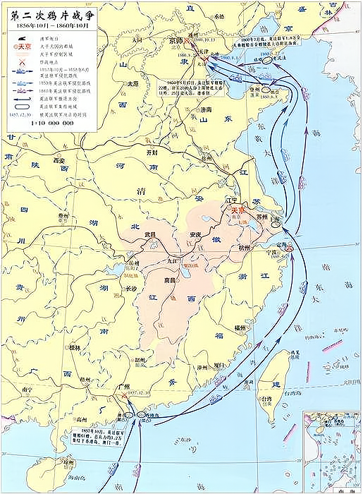 (1)观察《鸦片战争形势图》和《第二次鸦片战争形势图》,指出两次鸦片战争侵略军入侵路线的特点,及中国被迫开放的通商口岸位置变化。结合所学知识,指出第二次鸦片战争和第一次鸦片战争的关系