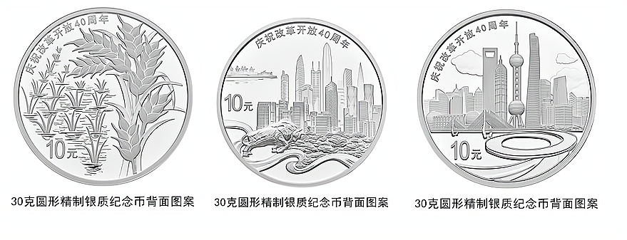 (3)改革开放使中华民族走向伟大复兴新时代。中国人民银行2018年发行庆祝改革开放40周年纪念币。其中三枚纪念币(如上图所示)背景图案分别为:安徽小岗村的禾苗和稻穗;深圳市建筑、港口、拓荒牛雕塑及飘带等组合;上海浦东标志性建筑及桥、江等组合设计。请结合相关史实,为庆祝改革开放40周年纪念币写一篇150字左右的介绍词。 |