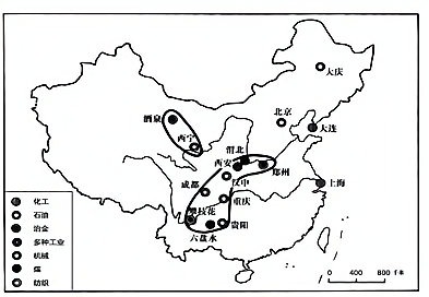 (2)观察材料二中的地图,指出20世纪六十年代我国工业布局发生的变化,并结合所学知识分析其原因。(6分) |