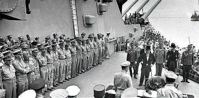 D 美国军舰“密苏里号”上的日本投降仪式