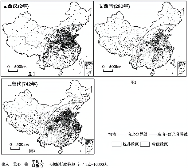下图三幅图体现了中国古代不同时期的人口分布情况