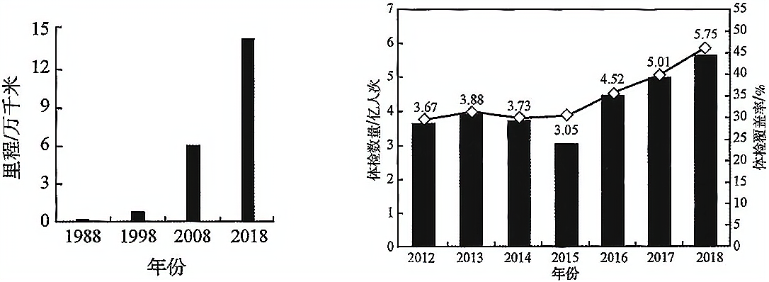 图4 中国高速公路通车里程 图5 中国健康体检人次数及覆盖统计情况