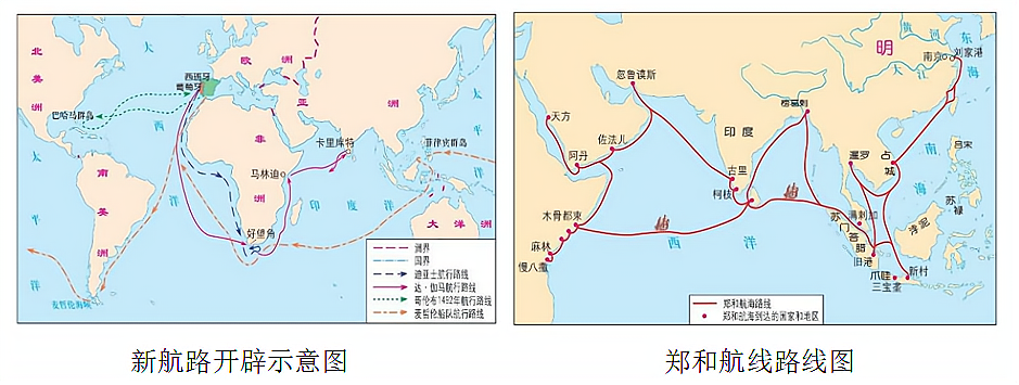 到15世纪初期……在欧洲,当他们寻找进入亚洲市场的途径时,欧洲的航海家们不仅建立了与非洲和亚洲各民族的直接联系,还向西驶入西半球和太平洋。他们的航行使得东半球、西半球以及大洋洲的各民族之间进行了稳定和持续的交流与互动。