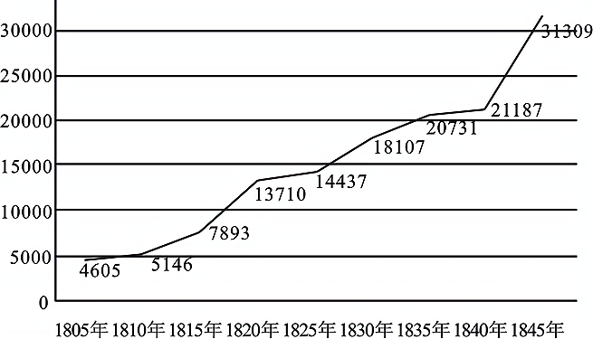 英国内政部对1805—1842年英格兰和威尔士因犯罪被捕人数统计