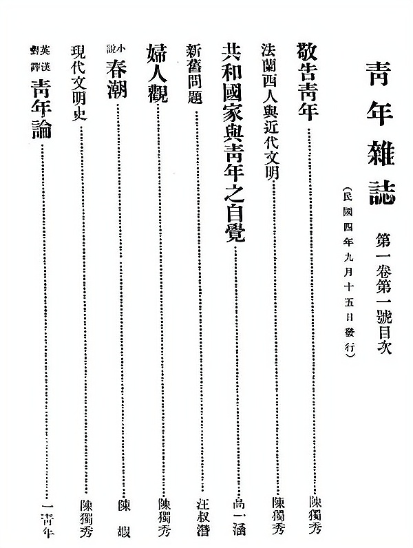 ④《青年杂志》一卷一号目录