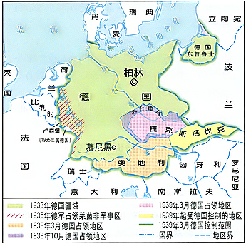 纳粹德国入侵波兰前在欧洲的扩张示意图
