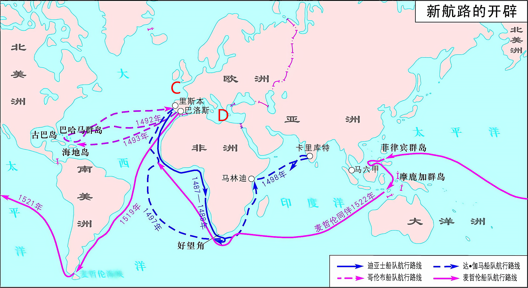 图2 新航路开辟示意图