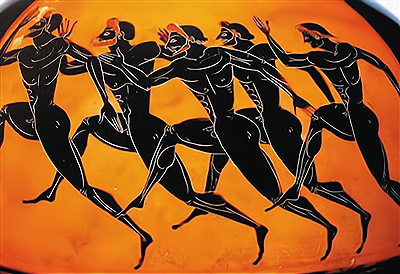 图一 古希腊画瓶上跑步的运动员
