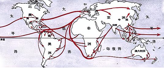 16世纪以来世界人口的主要迁移方向示意图