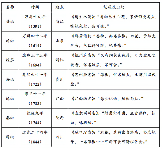——摘编自于帅《人口迁徙、环境适应与技术改良:辣椒在中国西南地区的传播》