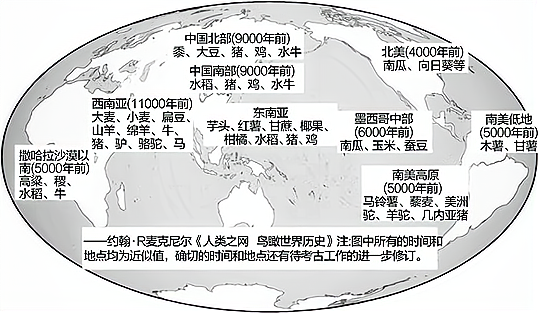 (1)奥杜威砍砸器(2)奥杜威手斧(3)冰河时代野牛岩画(4)克洛维斯矛头(5)澳洲土著居民的篮子(6)绳纹陶器(7)鸟形杵(8)公牛头纹碗(9)埃及化妆品调色板(10)喀帕苏斯女性雕像(11)玉斧(12)玉琮