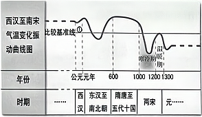 ①为现今的温度水平.作为标准比较我国五千年来的气温升降.并不代表我国五千年来的气温平均线。