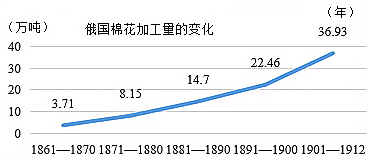 下图是1861—1912年俄国棉花加工量的变化示意图,促成这种变化的原因不包括( )