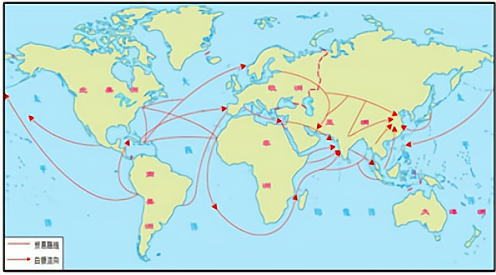 15—19世纪世界主要贸易路线和白银流向示意图