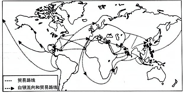 图6 1400~1800年世界贸易路线和白银流向示意图