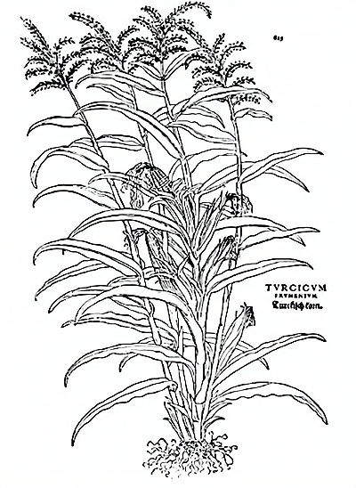 图2为1542年出版的《植物志》中的玉米植株图