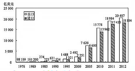 图2: 1978~2012年 货物出口和进口总额
