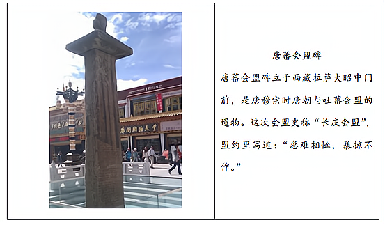 如图为立于西藏拉萨大昭寺门前的唐蕃会盟碑。