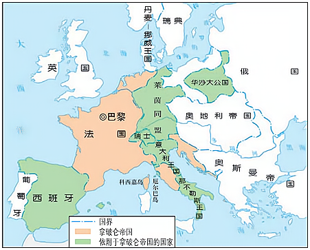 图二 1812年拿破仑帝国示意图