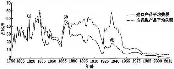 美国进口产品平均关税和应课税产品平均关税变化