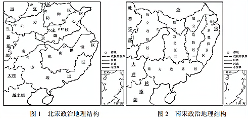 据学者研究,图1、图2分别为北宋和南宋政治地理结构图。