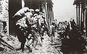 注:1938年3月,北路日军孤军南下,向台儿庄发起攻击,中国守军奋起抵抗。