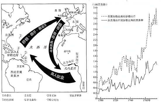 图1三角贸易 图2英国加勒比海的贸易