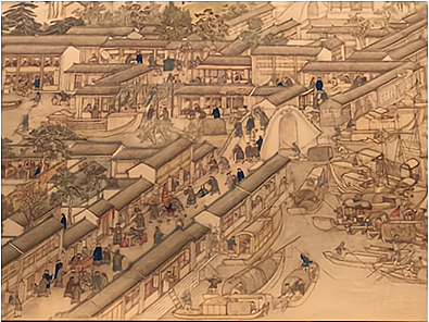 下图是清代乾隆时徐扬所绘的《盛世滋生图》又称《姑苏繁华图》(1759)(局部)