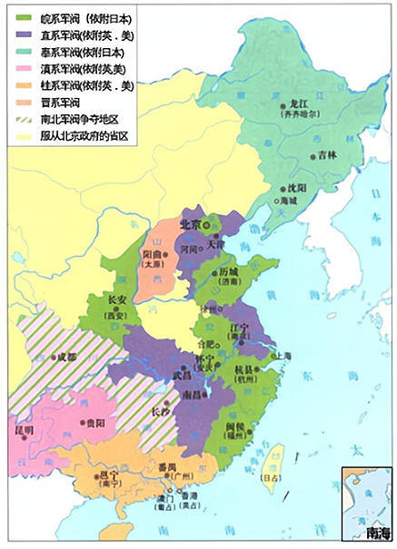 北洋军阀统治时期军阀割据示意图(1917—1918年)