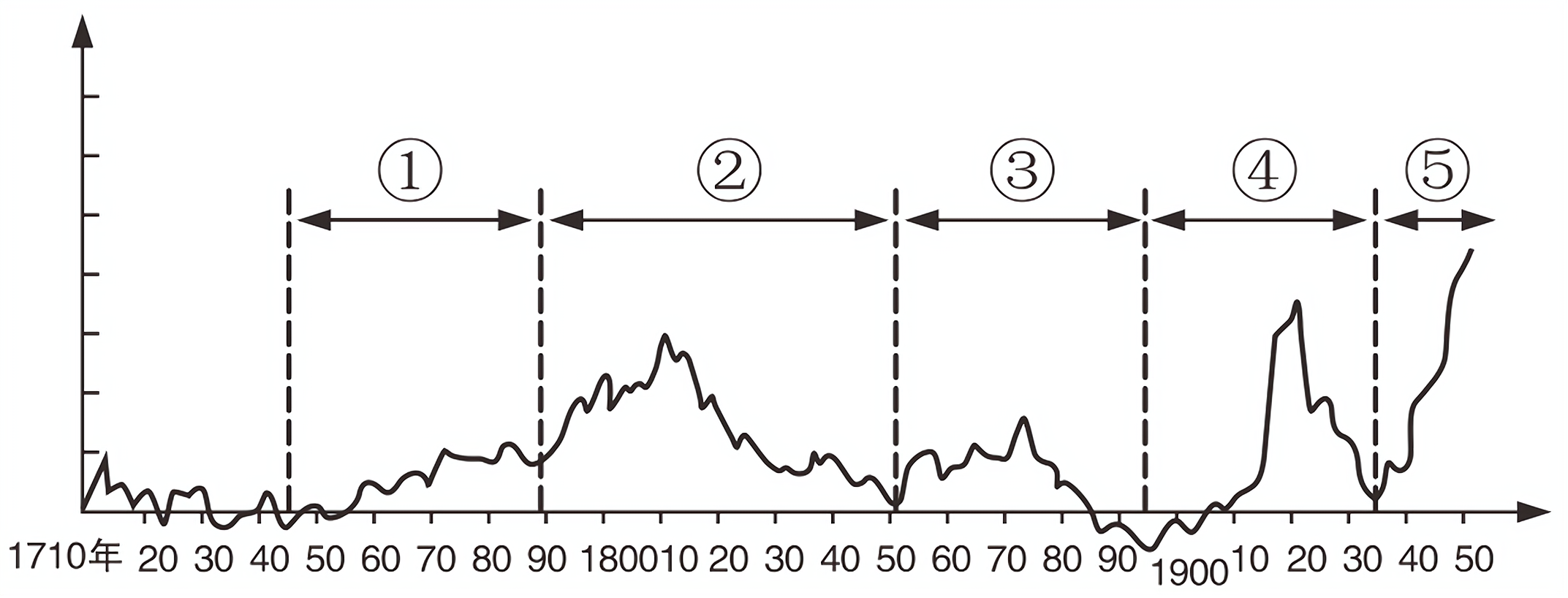 苏联早期经济学家康德拉捷夫的世界经济增长与衰退的波动周期表