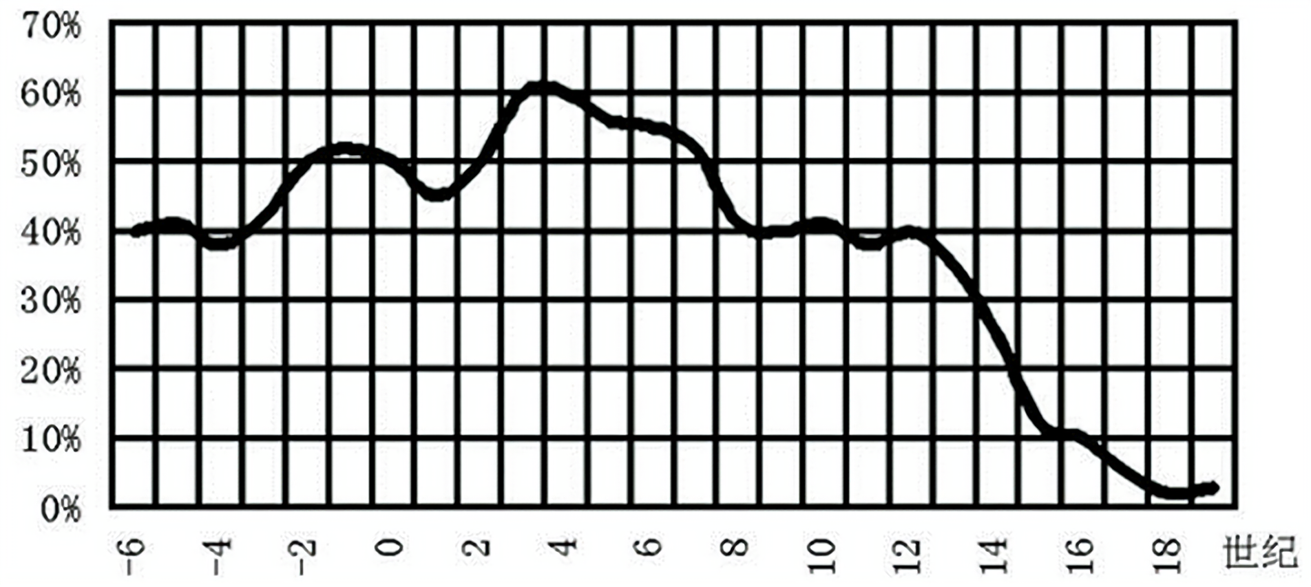 图3 中国古代重大科技成果占世界重大科技成果比例
