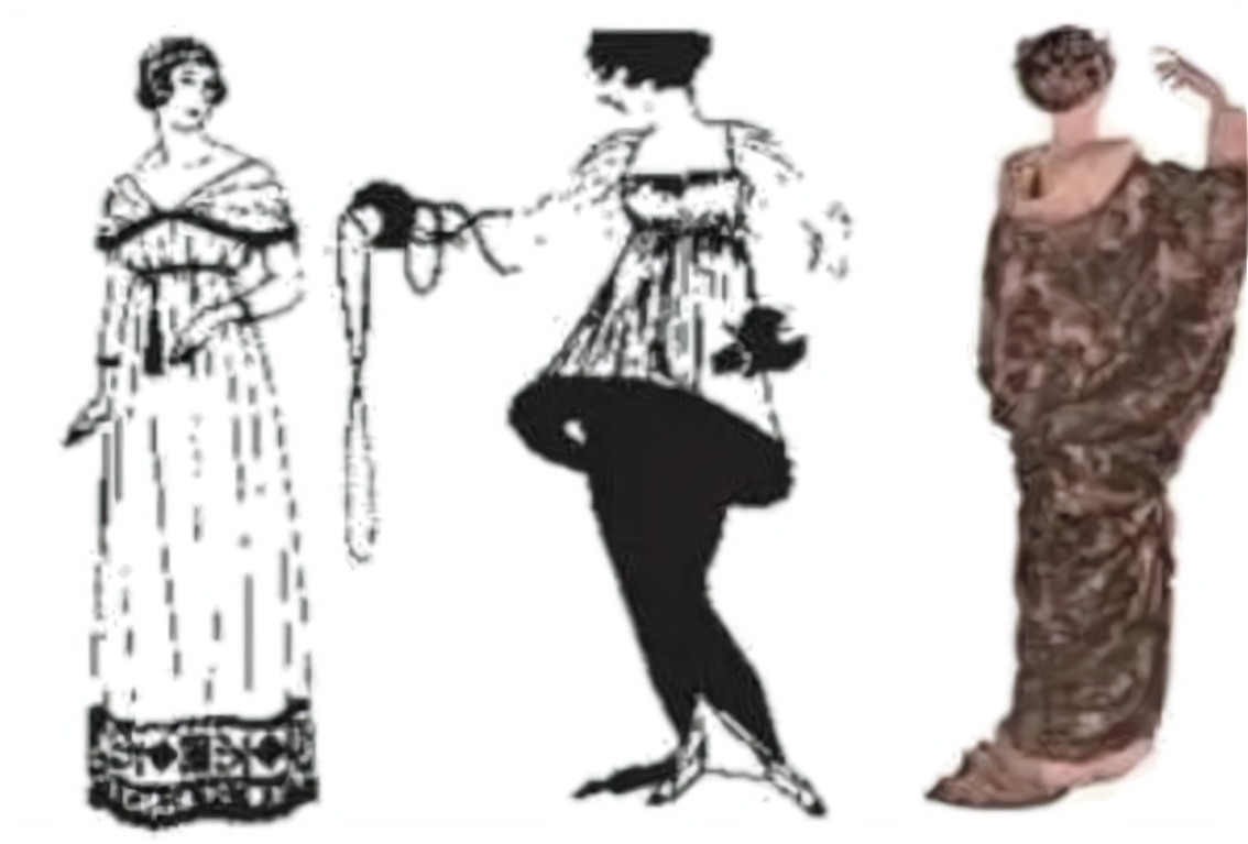 左、中、右三图分别为法国设计师受希腊古典文化、