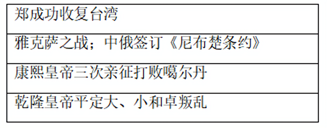 (2)根据材料一、二,指出清朝边疆治理的积极意义,并说明你从清朝边疆治理中得到的认识。(2分)