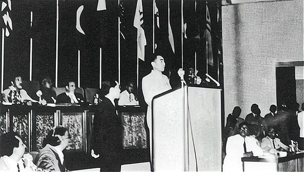 周恩来在万隆会议上发言的照片
