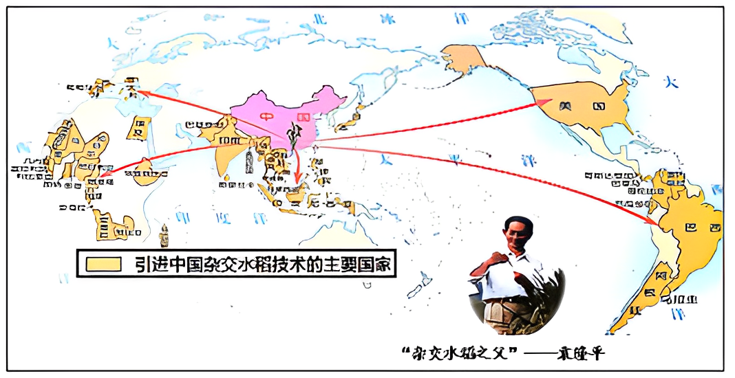 引进中国杂交水稻技术的主要国家分布图 |
