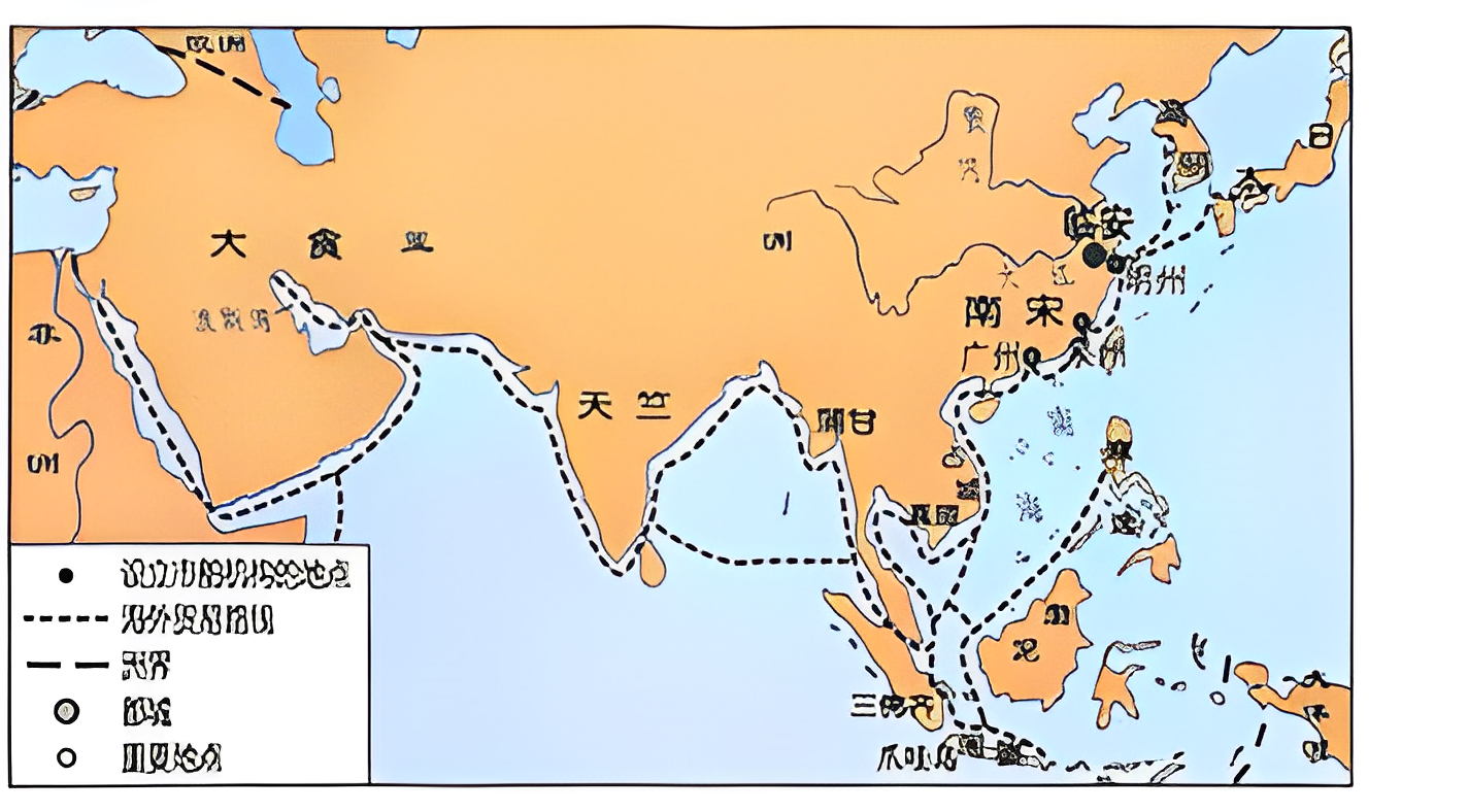 图1 宋代海路交通路线图 图2 元朝交通路线图