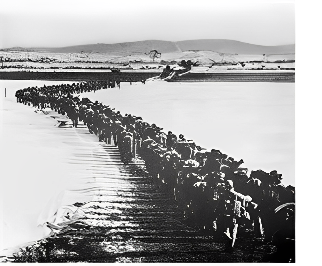 1956年1月30日,李墨林代表全国实现农业合作化的五亿农民,把印有金色双喜字的报喜信,双手捧献给毛主席,说:“我代表全国农民向您报喜!”
