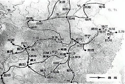 C.抗战时期民族工业内迁路线图