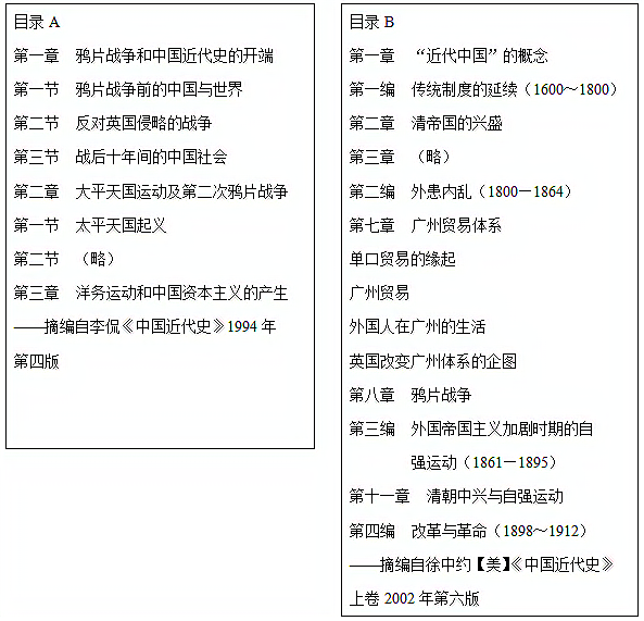 比较两份目录并结合所学知识,指出其中一处不同,并分析出现这种不同的原因。(所指出的