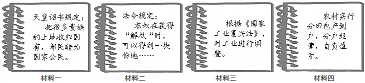 (1)材料一反映的是古代日本的哪一次改革?使近代日本之上资本主义道路的改革是什么?(2分)