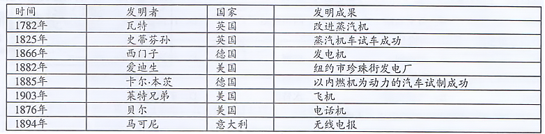(1)根据材料一并结合所学知识,指出第一次工业革命的主要动力。(1分)第二次工业革命成果与第一次相比取得哪些重大突破?(3分)