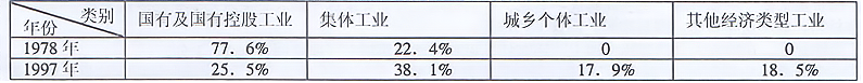 下图表为1978~1997年我国工业总产值中各种经济成分所占比重变化情况表。这种变化说明了城市改革使我国( )