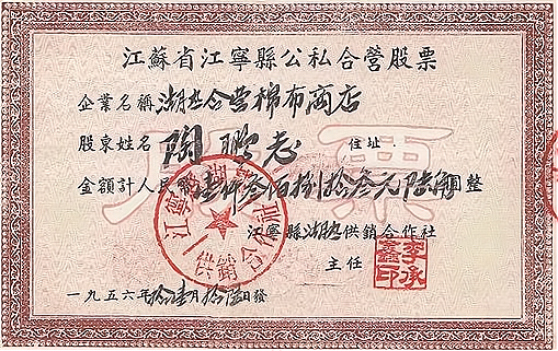 江苏省江宁县公私合营股票