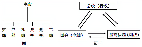 ——节选自岳麓书社《中国历史》八年级上册 (1)材料一中的图一反映的是哪个朝代的政治制度?(1分)图一和图二反映的两种政治制度指定的目的分别是什么?(2分)