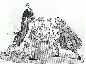 下图为法国大革命期间的一幅漫画,在铁砧旁的三个人分别是贵族、教士和平民,他们在共同打造一部新宪法。这部宪法应该是( )