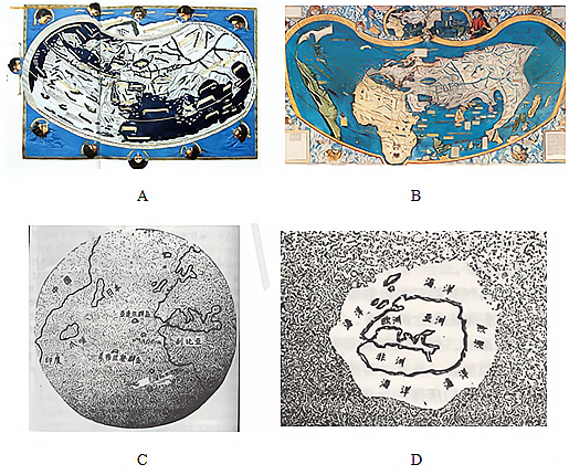 以下地图,与哥伦布对地球的认识最为贴近的是( )