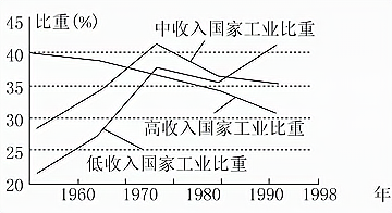 下图是20世纪后半期世界工业发展情况表。据图可知,高收入国家的工业比重呈不断下降趋势。以下对此现象的解读中,比较合理的是( )