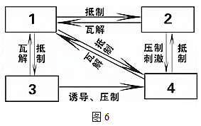 图6是近代中国四种经济成分——自然经济、洋务企业、民族企业、外资企业之间的关系示意图。图中序号依次对应的是( )