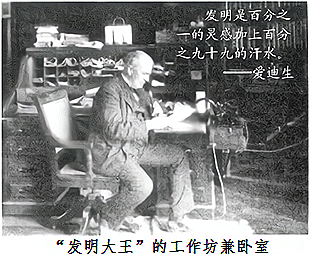 ”爱迪生的努力是分不开的,他发明和改进了我们在工作与日常生活中最为熟悉的电灯、电话、电报、电影……
